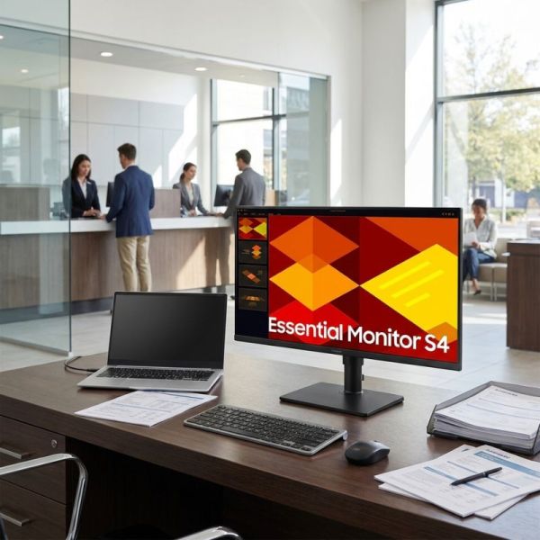 Le Samsung 24" S4 S40GD FHD allie haute qualité d’image, design ergonomique et connectivité polyvalente — idéal pour les environnements de travail professionnels et les configurations de bureau à domicile.