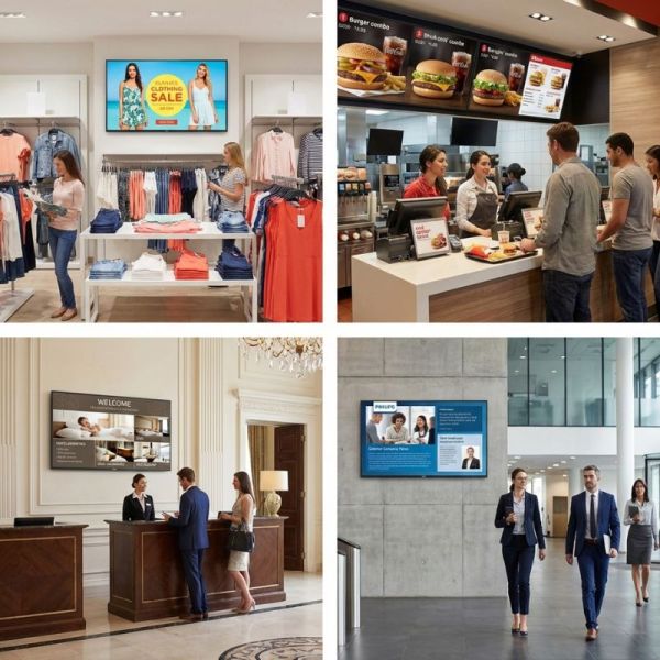 Idéal pour l'affichage numérique en magasin, la signalisation dans les aéroports, les gares, les restaurants ou les salles de réunion d'entreprise. Compatible avec les applications Android, les plateformes cloud et les systèmes audiovisuels professionnels.