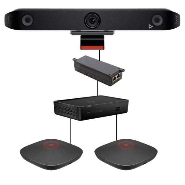 Ce boîtier PoE est incontournable dans vos salles de réunion : il sert à faire la liaison entre votre barre vidéo Poly et le pont audio Poly Studio A2.