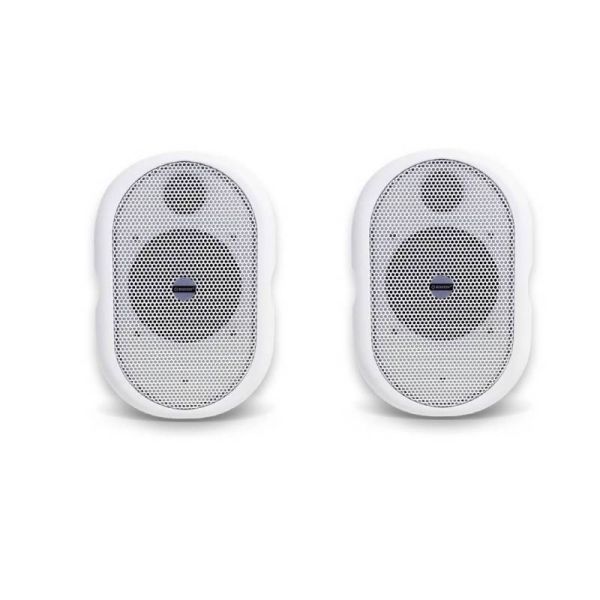 Enceintes actives compactes équipées d’un support mural, pensée pour une intégration discrète et une diffusion sonore maîtrisée en milieu professionnel.