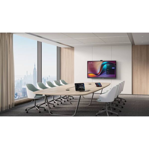 Son écran tactile PCAP 4K de 75" avec revêtement antireflet garantit une excellente visibilité sous tous les angles. La caméra 4K intégrée propose un cadrage automatique et un suivi de l’intervenant grâce à l’intelligence artificielle. Le système audio, combinant haut-parleurs stéréo et 16 microphones, assure une communication claire à tout moment.